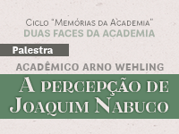 A percepção de Joaquim Nabuco Conferências Data e horário: 2 de Dezembro de 2025 às 16h00 Coordenação: Acadêmico Merval Pereira Palestrante: Acadêmico Arno Wehling